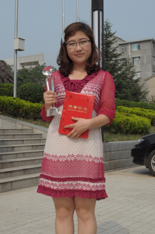 ,“中文系魅力员工揭晓即2011年毕业生欢送会”上,她被评为“魅力员工”,中文系魅力员工评选委员会授予她的颁奖词是:求知和进取是她人生中最大的乐趣。拼搏与努力给她换来最好的回报。发表获奖感言时,她深情的说:“今天我荣幸的站在这里,首先要感谢一路走来陪伴我的老师和同学,感谢一直在背后默默支持我的父母和朋友。有你们的陪伴,考研路上我不寂寞;有你们的支持,考研路上我从不懈怠。其次,祝愿中文系的学弟学妹学习进步、学业有成;祝愿中文系的领导、老师身体健康,工作顺利;祝愿中文系‘大美中文’魅力永远!”