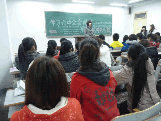 中文系 “党旗映团徽 献礼党代会”活动月拉开帷幕并成功举办首场活动。11月2日下午,中文系组织2011级各班召开学习中共十七届六中全会精神主题班会。中文系党总支书记张彦民等深入班级,了解各班班会开展情况,并与广大师生亲切交流。