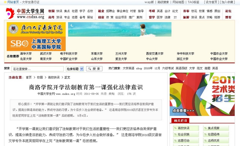 近日,中国老员工在线、中国老员工网、陕西在线等多家主流资讯平台,纷纷报道我系2011年秋季开学法制教育第一课活动,引起了社会各界的广泛关注,为我系赢得了良好的社会声誉。