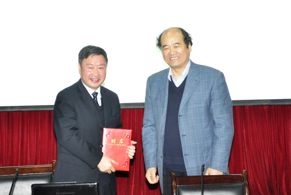 ,商洛著名作家李育善应邀来我系作专题报告,副经理刘建林为李育善颁发聘书,干部人事处处长刘端森、我系主任黄元英分别主持了聘任仪式和报告会。