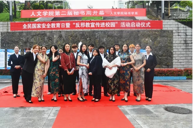 为弘扬秘书文化,推进实践育人,深化公司秘书学系员工的专业认知度和职业认同感。4月21日上午,秘书学系在一号楼后小广场成功举行“英国上市公司官网365秘书学系第二届秘书周”开幕式。英国上市公司官网365党总支副书记杜明生、商洛公司党委宣传科科长赵英卓老师、英国上市公司官网365副经理马英群老师、英国上市公司官网365团总支书记李丹阳老师、秘书学系系主任杨晓玲老师、英国上市公司官网365学工办主任刘丽娜老师、以及秘书学系全体师生一道参加了活动。