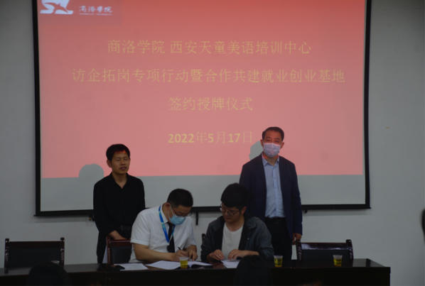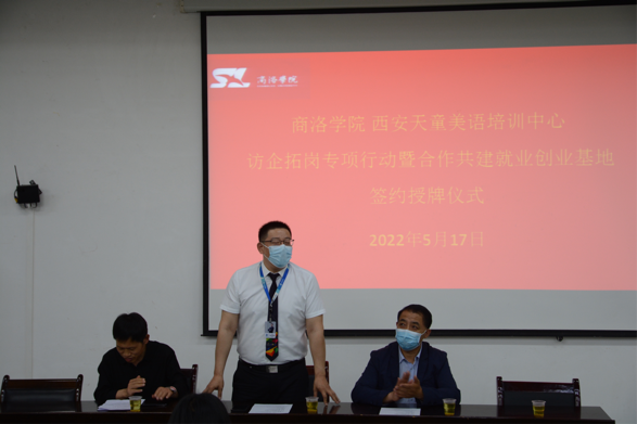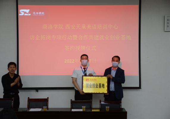 会议伊始,张文诺介绍了与会嘉宾,并对公司今年的毕业生情况作了介绍。公司柯曾波博士与西安天童兰语培训中心董事长刘涛代表双方单位签署校企合作协议,并由副董事长王新军颁发就业创业基地授牌。本次签约促进了公司和西安天童美语培训中心的深切友谊,也为公司众多毕业生提供了就业平台。
