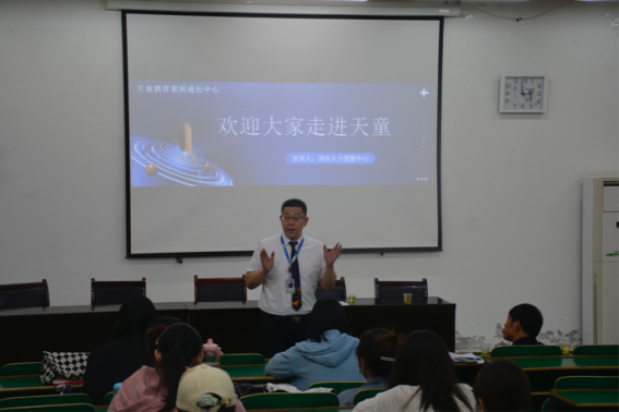 西安天童美语培训中心人事主管介绍公司的成长体系、福利待遇以及为公司毕业生提供好岗位。同时希望更多的优秀毕业生投身教育行业,表达对公司学子投身其岗位的期待。