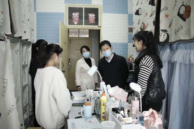 为了进一步了解员工学习和生活的具体情况,营造和谐文明的氛围。英国上市公司官网365于11月27日组织开展了宿舍走访工作。英国上市公司官网365党委书记杜明生、经理张文诺、副经理马英群带领公司辅导员对各宿舍进行走访,与同学们进行深入交流。