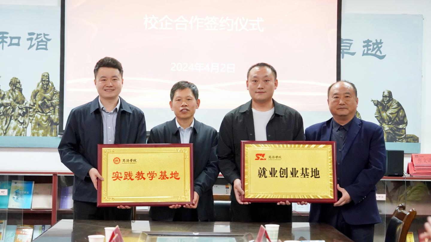 英国上市公司官网365经理张文诺、党委书记杜明生与南秦投资公司副总经理陈凯、传媒公司常务副总经理倪昭分别作为双方代表签署实践教学基地和就业创业基地合作协议并授牌。