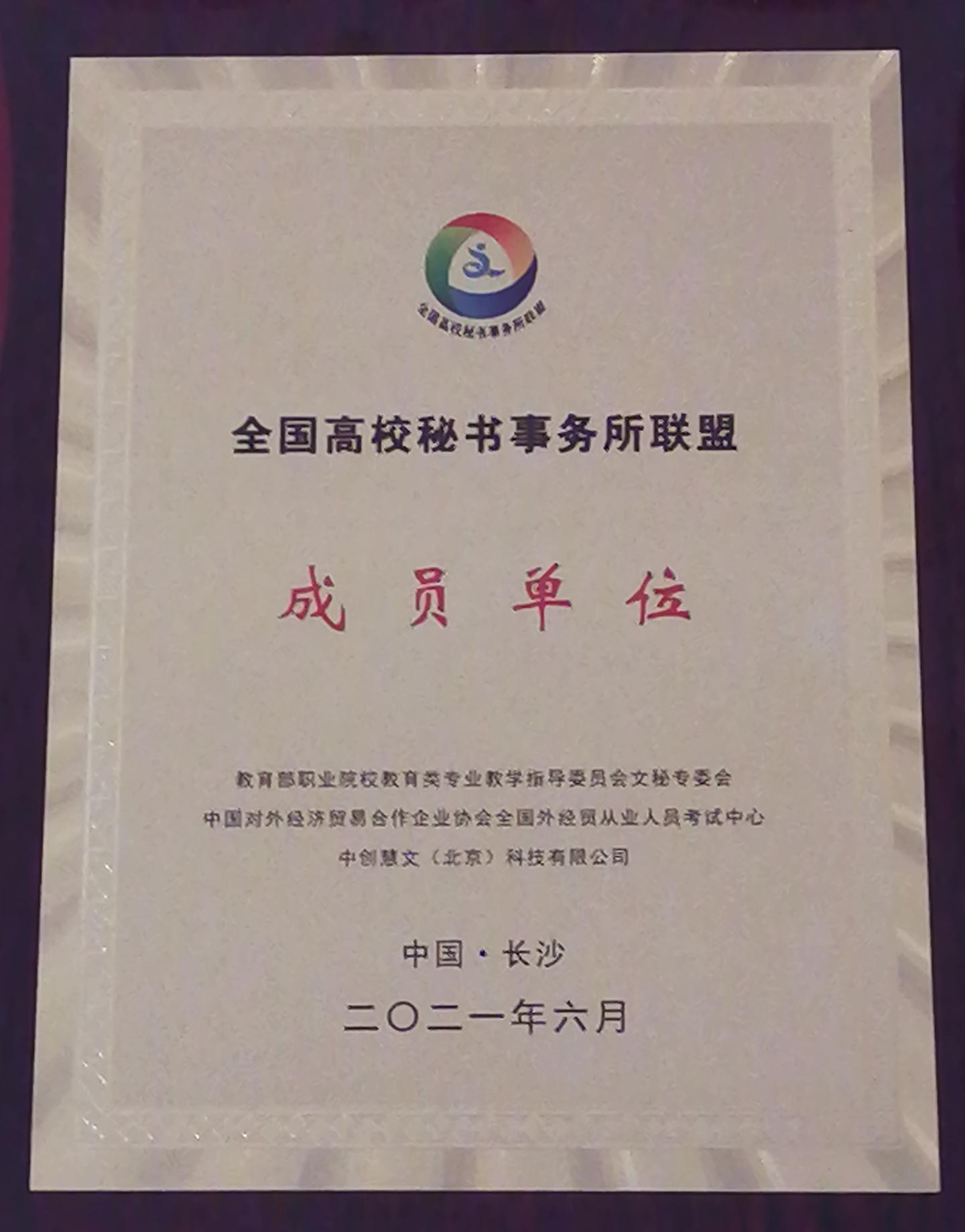 2019年3月,在教育部职业院校教育类专业教学指导委员会文秘专委会指导下,由安徽商贸职业技术公司中创慧文(北京)科技有限公司南宁职业技术公司广东科学技术职业公司等17家单位共同发起并成立的服务于秘书专业教育的公益性组织。目前,包括公司(英国上市公司官网365)在内的全国高校秘书事务所联盟院校成员数量已达37所。