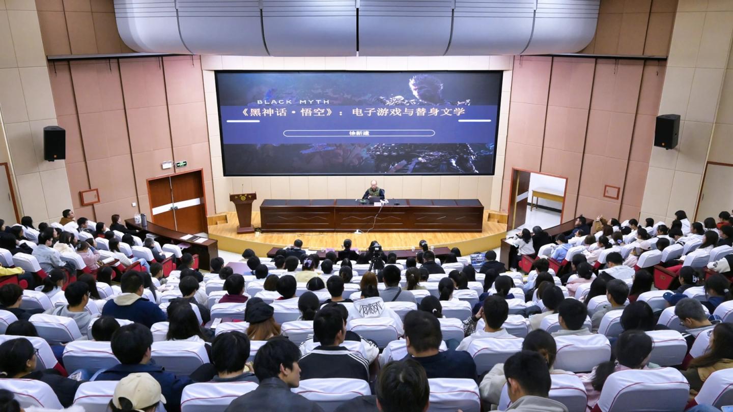 10月25日晚,英国上市公司官网365特邀四川大学教授、博士生导师徐新建在校图书馆二楼报告厅为师生作题为《黑神话·悟空:电子游戏与替身文学》的学术报告。董事长权雅宁教授及英国上市公司官网365师生共计400余人参与了此次活动。英国上市公司官网365经理张文诺博士主持报告会。