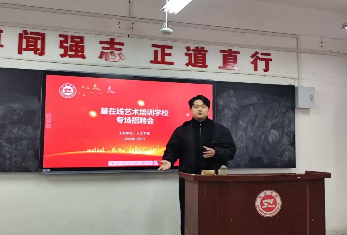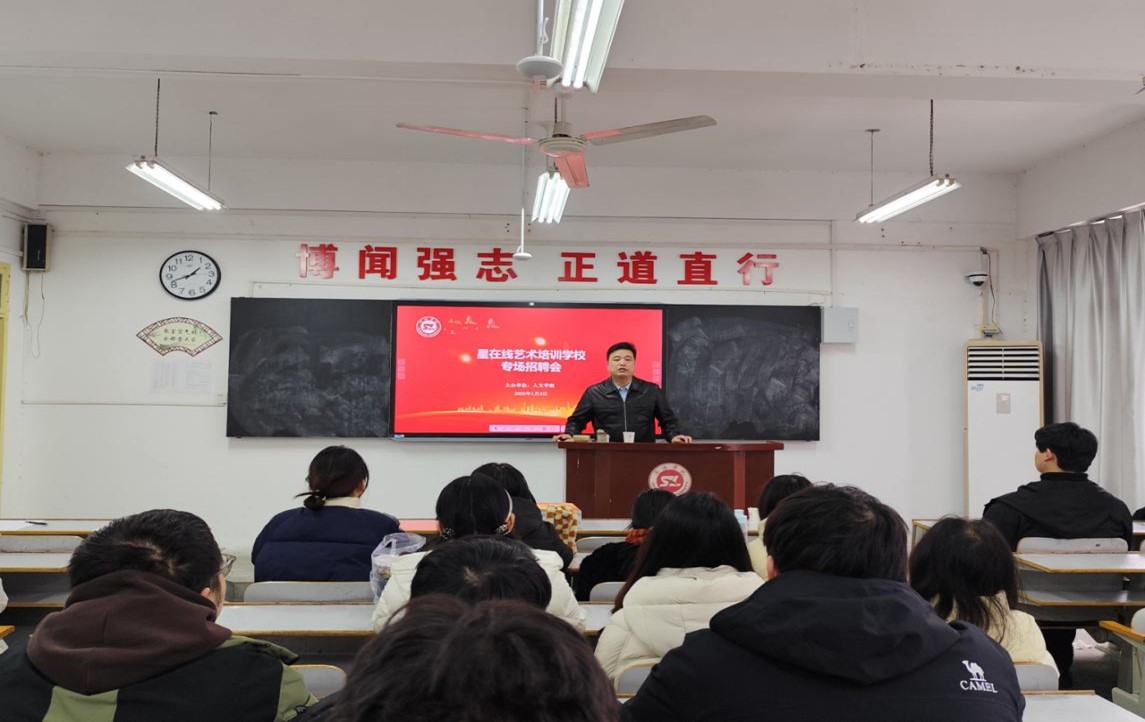 招聘会上,星在线艺术培训公司董事长杨涛详细地介绍了公司的基本情况、各个岗位的要求、职业发展前景以及福利待遇等员工们关心的问题。艺术公司学前教育2111黄柏杨结合自身应聘星在线艺术公司的经历与感受进行了分享交流,并鼓励大家勇于尝试,抓住就业关键期,积极就业。