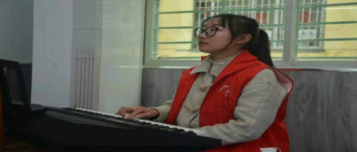 “黑黑的天空低垂,亮亮的繁星相随……”,手指在黑白键上游走,悦耳的声音回荡在教室,志愿者为孩子们带来了一节有趣生动的音乐课,希望孩子们的童年像歌曲中那样,都有一只发光的萤火虫,为他们指引方向,照亮成长的道路。