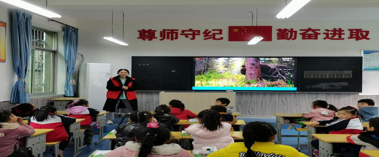 趣味地理课上,志愿者带小朋友走进动物的世界。希望以此打开孩子们的视野,在他们的心里播下一颗“世界那么大,我想去看看”的种子,激发他们探索自然的兴趣
