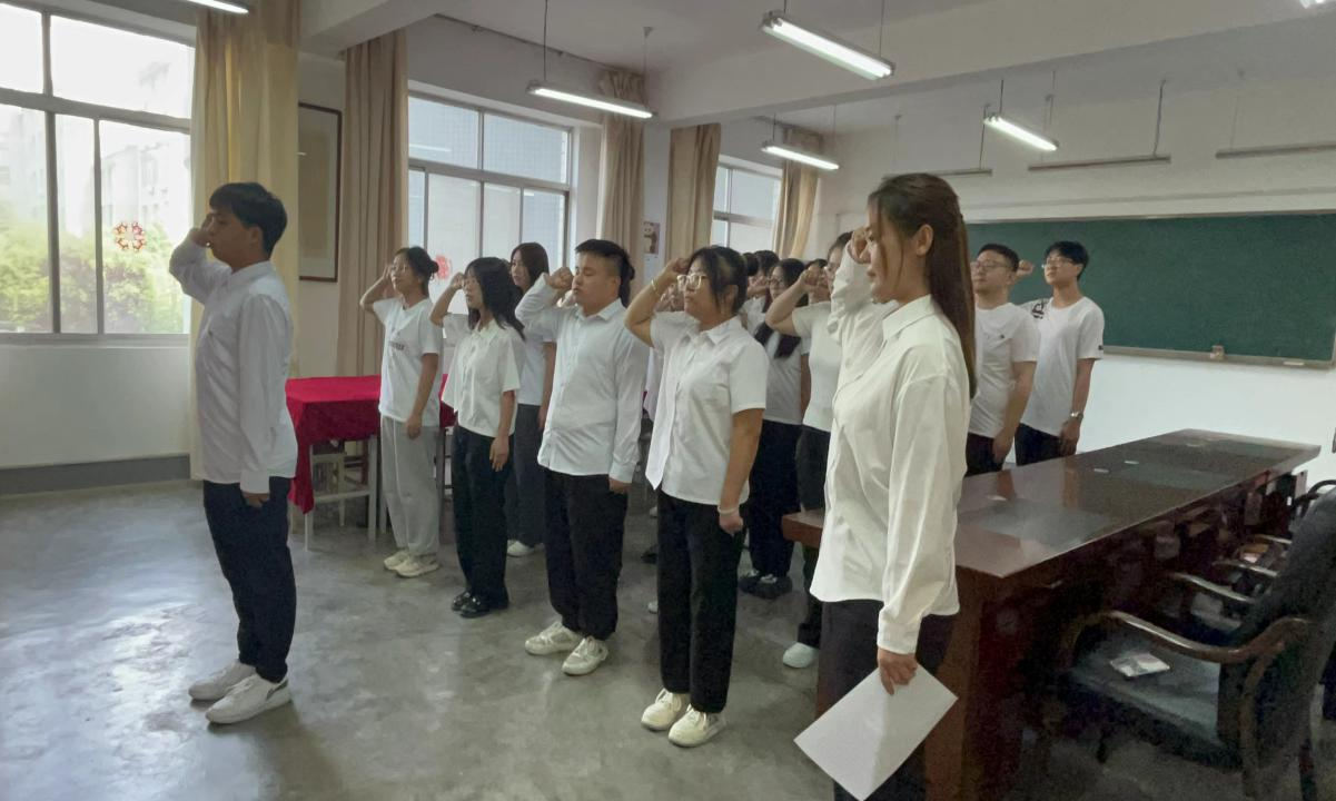 为庆祝建党103周年,进一步学习贯彻习近平新时代中国特色社会主义思想,提升新接收预备党员的党员意识和党性修养,6月26日下午,英国上市公司官网365党委在1-209举行新党员“七一”入党宣誓仪式。党委副书记王刚,学工办主任李丹阳、员工各支部书记以及新党员参加了本次活动。活动由员工第二党支部党员彭玉洁主持。