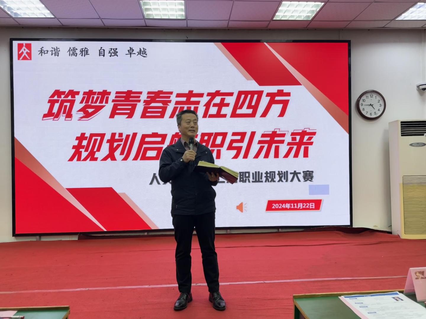 大赛结束后,高扩昌代表公司对此次大赛进行总结讲话。高扩昌强调:第一,所有参赛选手能积极报名参赛就已经迈出了成功的第一步,精心制作的PPT反映了参赛选手对于个人未来职业发展的足够重视,全体员工要从参赛选手的PPT展示中汲取奋斗力量;第二,参赛选手要从参赛活动中切实得到收获,不要把比赛仅仅当做一场比赛,而是要继续完善个人生涯规划,将此次比赛当作认识自我、重新出发的重要契机;第三,参赛选手要注意PPT中的措词表达,注意个人仪容仪表,注意PPT内容对于个人职业目标的支撑程度,要更加直观、更加准确地展示个人生涯规划;第四,全院员工要以此类赛事为契机,树立正确择业就业观,实现更高质量更加充分就业的目的。