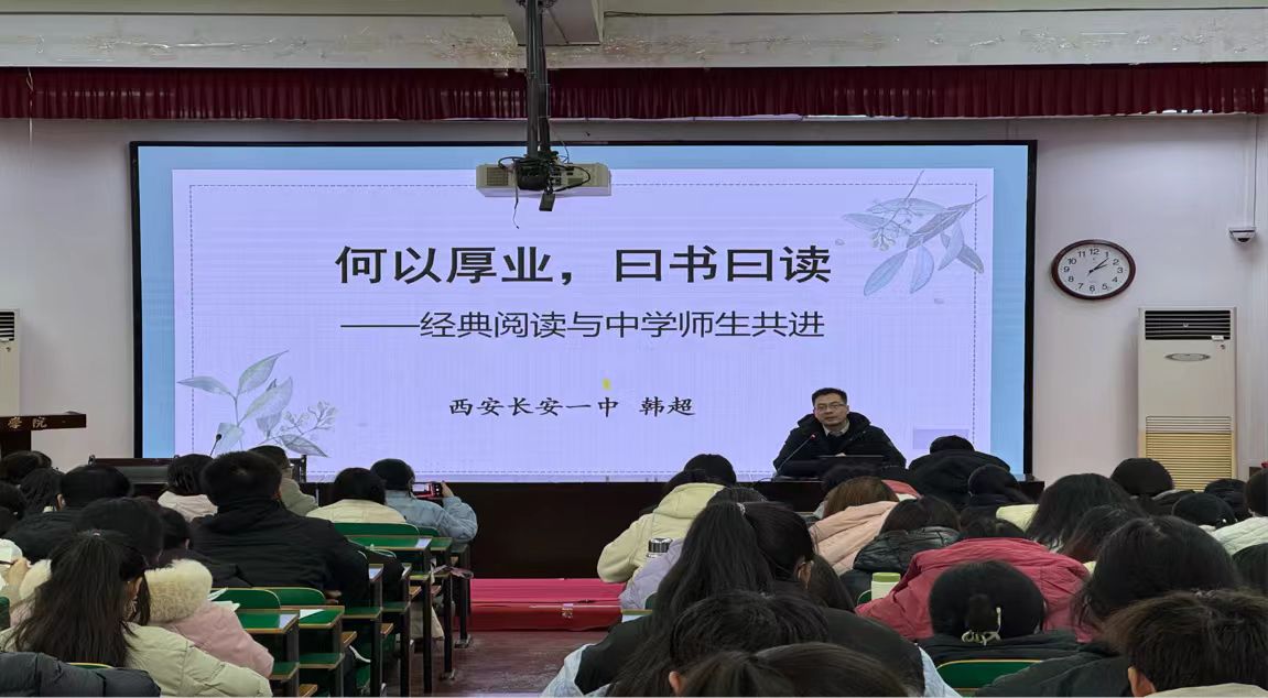 汉语言文学专业2023级实践教学“经典研读”,于2024年12月26日下午在报告厅二以学术报告的形式拉开序幕。陕西省教学能手、中学语文高级教师韩超应邀作“何以厚业?曰书曰读——经典阅读与中学师生共进”的主题报告。英国上市公司官网365经理张文诺出席并为韩超老师颁发聘书。报告由副经理张建军主持。