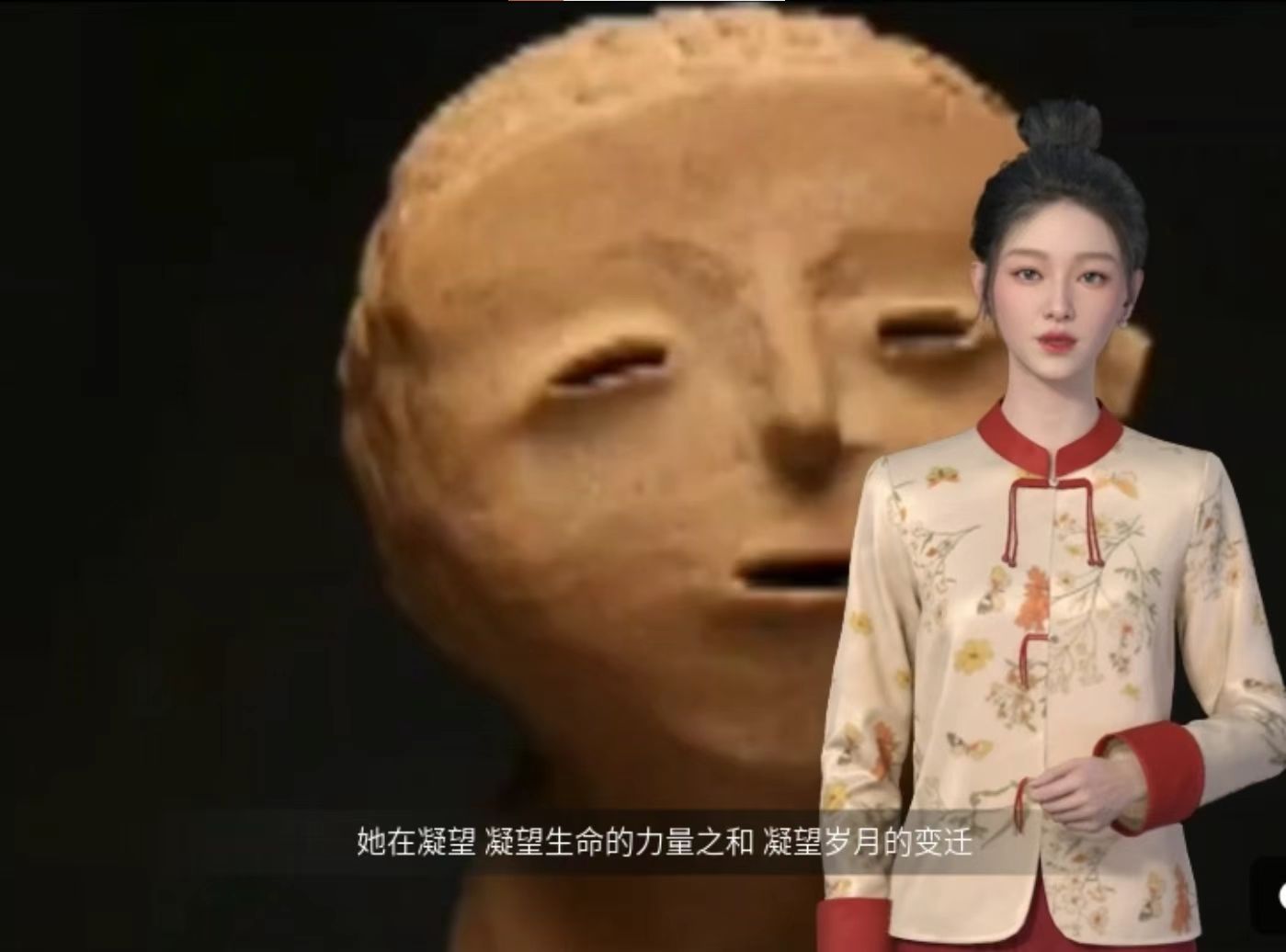作为本次实践活动的“主角”,秦岭博物馆镇馆之宝——仰韶文化红陶人头壶成为员工们关注的焦点。这件距今6000余年的文物,以人面陶壶造型融合储水功能,被誉为“中国最早的肖像雕塑”。活动中,同学们在志愿者和人工智能AI视频讲解相结合下观察其独特的人首葫芦形器身、圆润的捏塑手法及象征生命崇拜的母系社会泥塑风格,并通过“透视”内部结构的讲解,认识人头壶背面留有进水口,眼睛和嘴巴则构成出水口的巧思。同学们积极发言,向志愿者们提出相关问题,热情讨论,大胆尝试解密新石器时代制陶工艺并畅想先民生活图景。