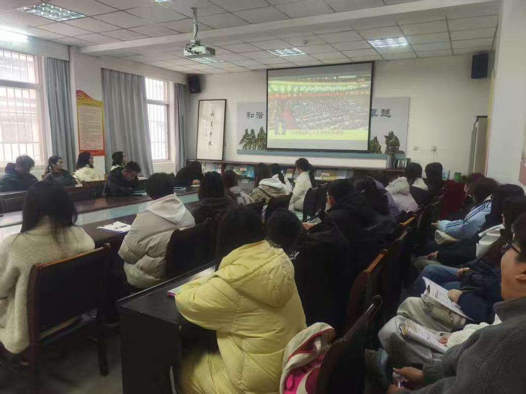 上午9时,会议在庄严的《中华人民共和国国歌》声中拉开帷幕。师生全体起立,奏唱国歌。 接下来,师生们聚精会神聆听国务院总理李强政府作的工作报告,认真记录要点。报告全面回顾了2024年我国经济社会发展成就,明确了2025年政府工作目标及任务。报告强调“高质量发展”“青年人才培养”“科技创新”等核心任务,为高等教育与团队建设指明方向 。