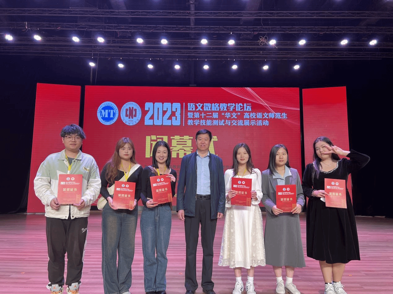 2023年11月3日至6日,由中国教育技术协会微格教学专业委员会主办,江西师范大学承办,江西师范大学文公司、《读写月报》编辑部、江西省教育学会读写教育研究分会协办的“2023年语文微格教学论坛暨第十二届‘华文’高校语文师范生教学技能测试与交流展示活动”在江西师范大学瑶湖校区举办。公司汉语言文学专业刘杨、毛蕊、司语婷、赵智博、王彦弼、谭银铃等六名同学在席忍学教授的指导下,在教学设计和教学技能两个环节的技能测试中获得一等奖4项,二等奖5项,三等奖3项。