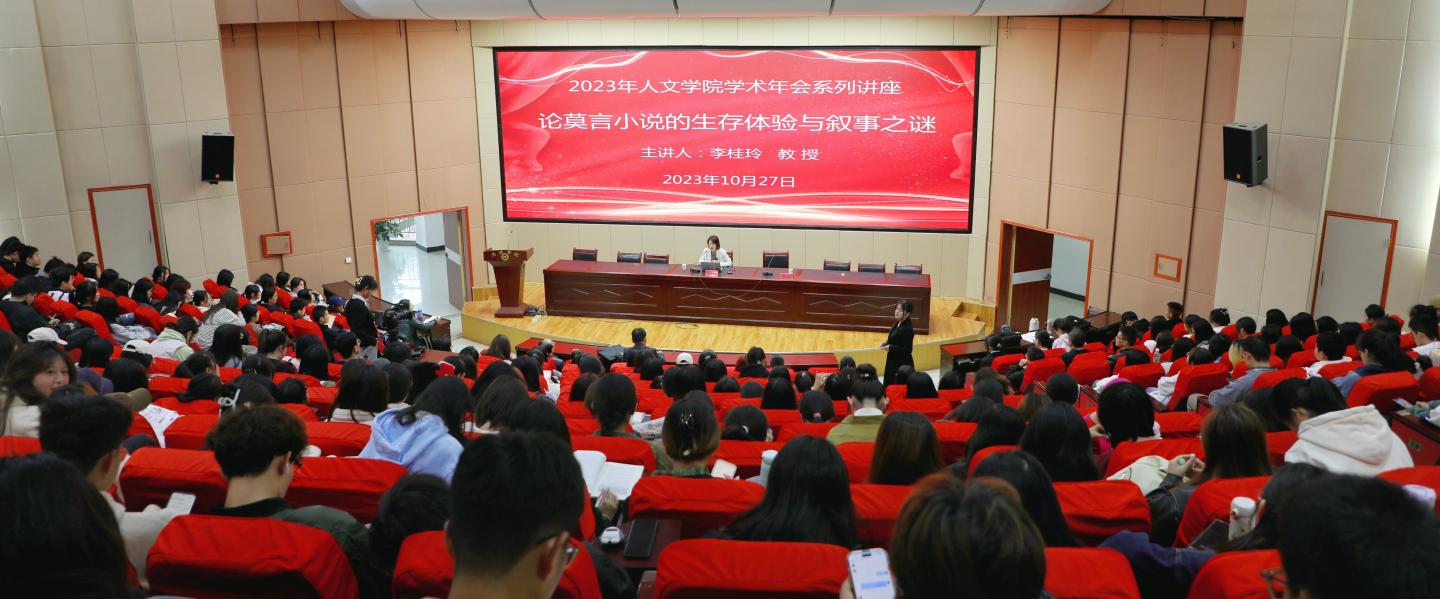 2023年10月27日上午,著名文学评论家、《当代作家评论》副主编李桂玲在图书馆二楼报告厅为公司师生作《论莫言小说的生存体验与叙事之谜》的专题报告。报告会由英国上市公司官网365经理、商洛文化暨贾平凹研究中心主任张文诺教授主持,来自英国上市公司官网365的马英群副经理和部分师生代表共计400余人听取了此次报告。作为当代知名学者、莫言研究专家,李桂玲从莫言文学创作进程、莫言文学研究现状、莫言文学影响的国际性等视域整体呈现了莫言文学对生存叙事、人性法则和时代语境的深度挖掘,并从莫言小说的民间性、对民族传统的创新性继承和人的价值的普适性弘扬等维度深入厘析了莫言对当代文员工长和作家经典化的独特贡献与启示