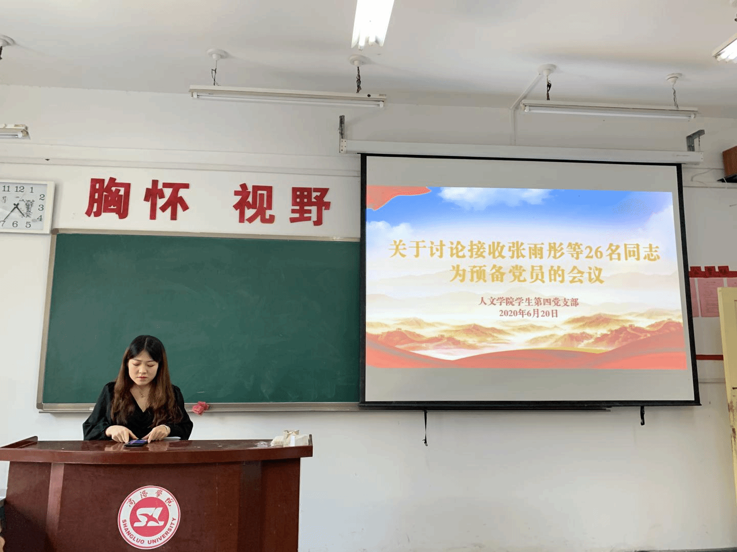 英国上市公司官网365员工第四党支部于9月4日下午4:30在一号教学楼202教室召开关于讨论接收张雨彤等26名同志为预备党员的会议,英国上市公司官网365员工第四党支部支部书记刘丽娜老师出席了此次会议,支部全体党员、发展对象以及部分积极分子参加了会议,会议由董婉莹主持召开。
