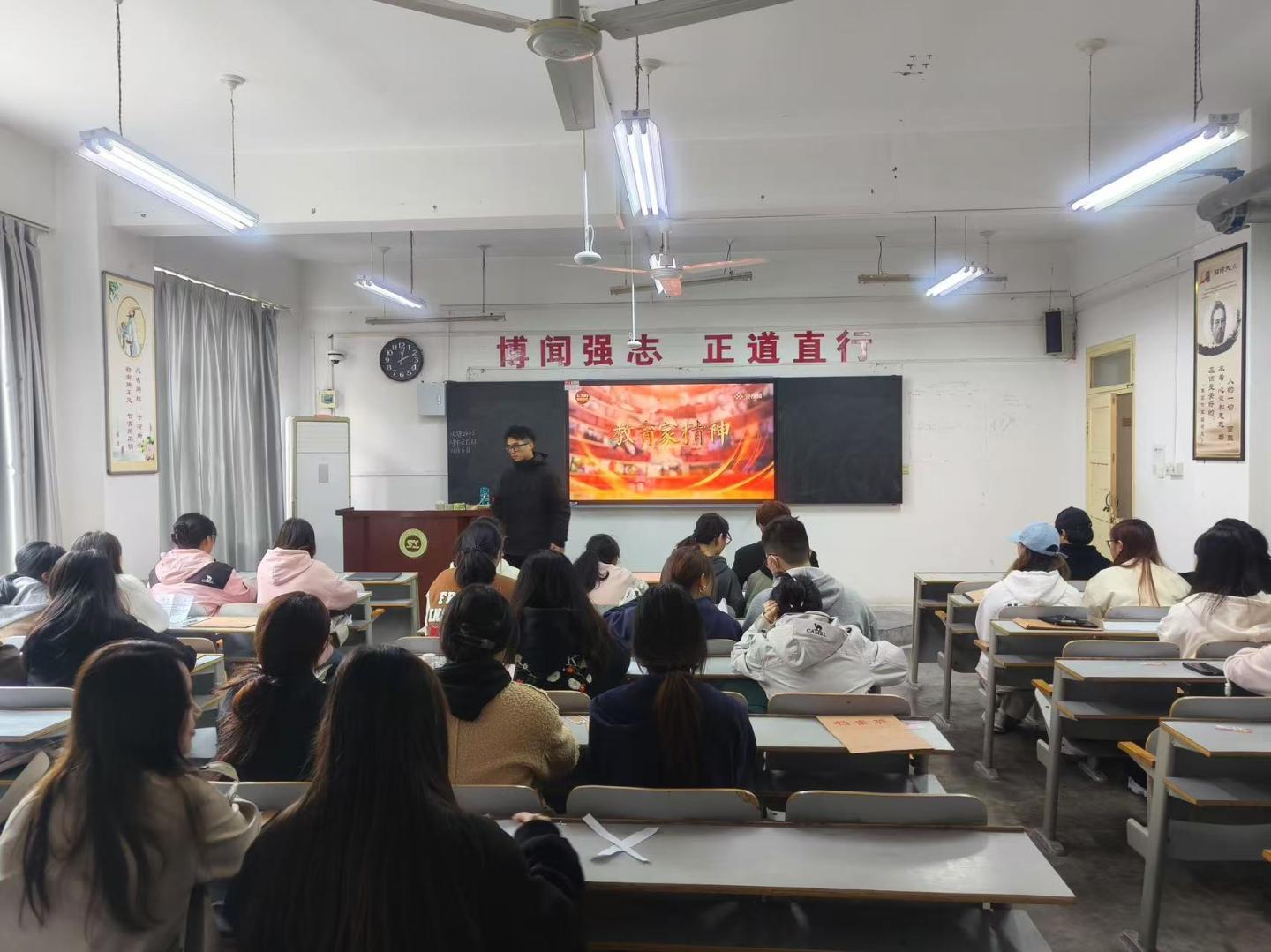 活动于11月6日下午在1号楼104教室正式拉开帷幕,王思源带领全体同学学习了《教育家精神》第一篇《心有大我,至诚报国》,特别是关于加强师德师风建设、培养新时代教师队伍的重要论述。强调了教育家精神是新时代教师的宝贵财富,是推动教育事业高质量发展的强大引擎。