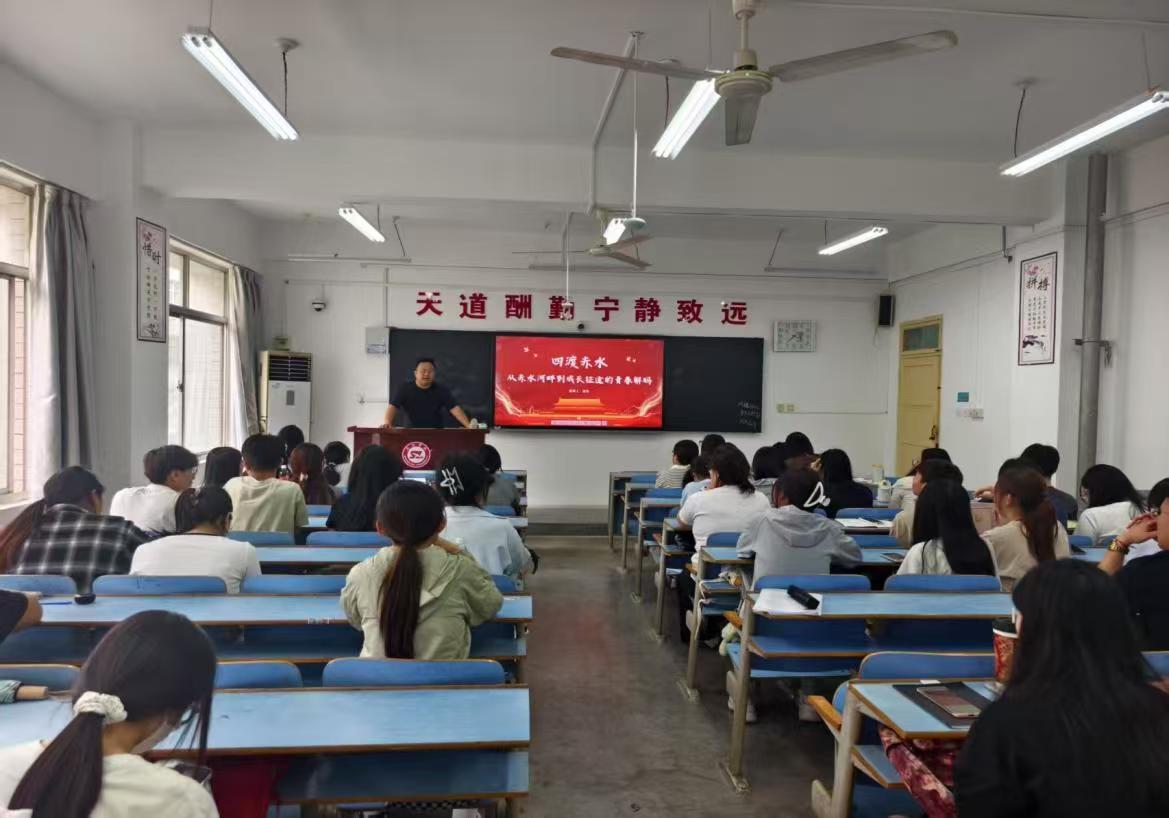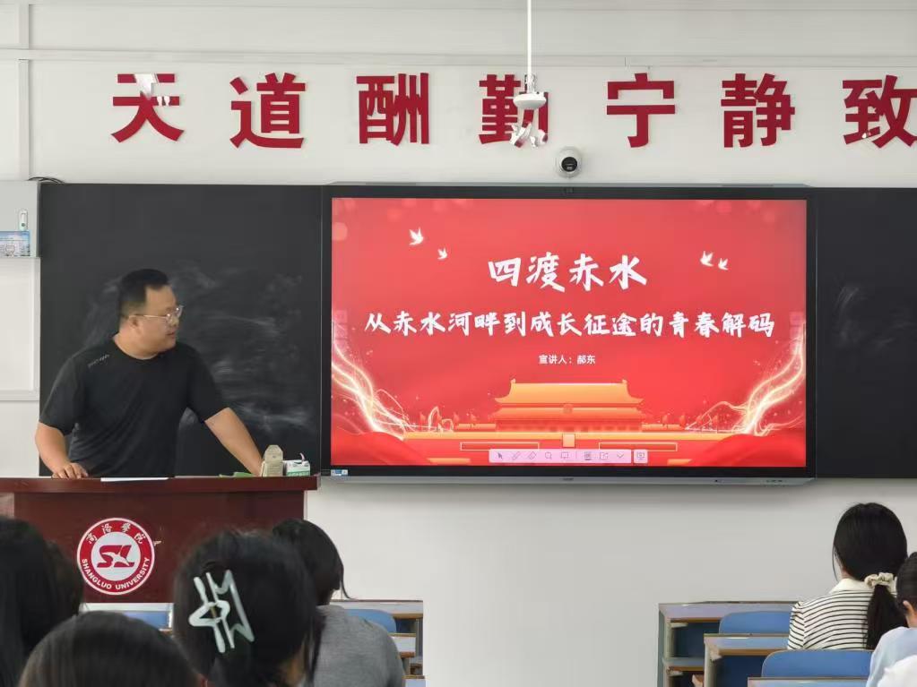 分享交流结束后,郝东开展了题为《四渡赤水——从赤水河畔到成长征途的青春解码》的党课讲授,课程深入浅出地将“赤水河畔”的革命智慧引入到成长征途的青春解码。他讲到作为时代新人,我们既要用文字解析历史,更要用行动续写长征——把“创新思维”装进行囊,把“韧性品格”融入骨髓,把“协作智慧”化作能力,把“信仰之光”照进选择。